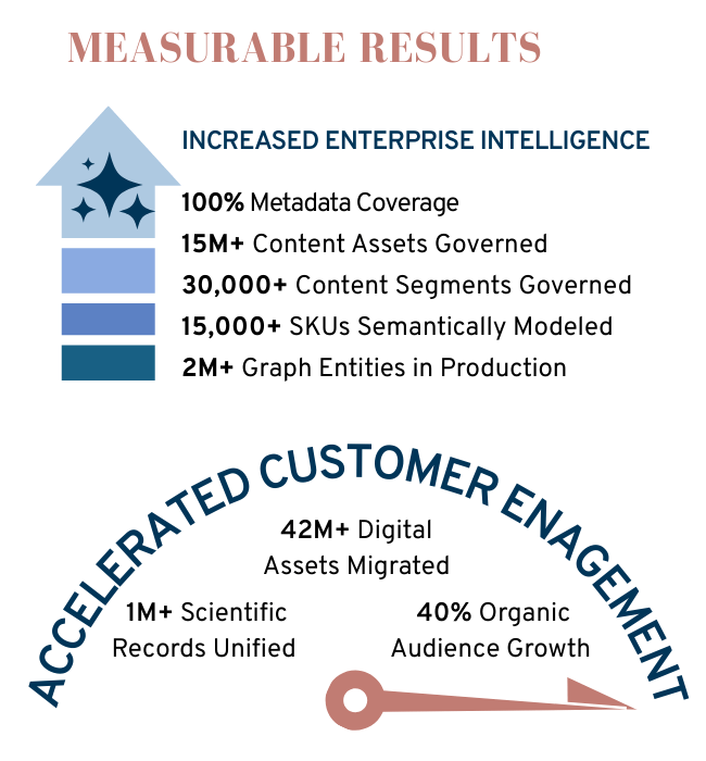 Transforming fragmented environments into cohesive enterprise capabilities that improve speed, reuse, and confidence. Enabling AI and analytics to operate on well-formed inputs, reducing downstream risk and rework. Converting accumulated complexity into sustained performance by making content intelligence reliable at scale.